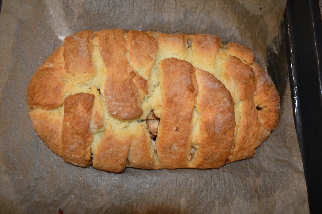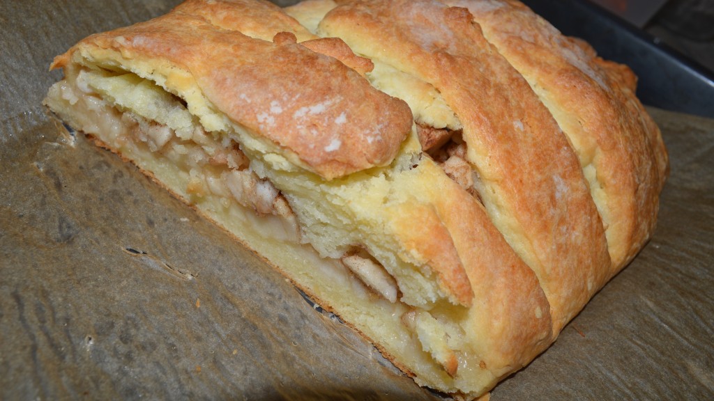 Серединка выпечки получается нежной, сочной, немного влажной, пропитанной соком яблок. Подать вкуснейшую, ароматнейшую творожную плетёнку к чаю или с молоком.