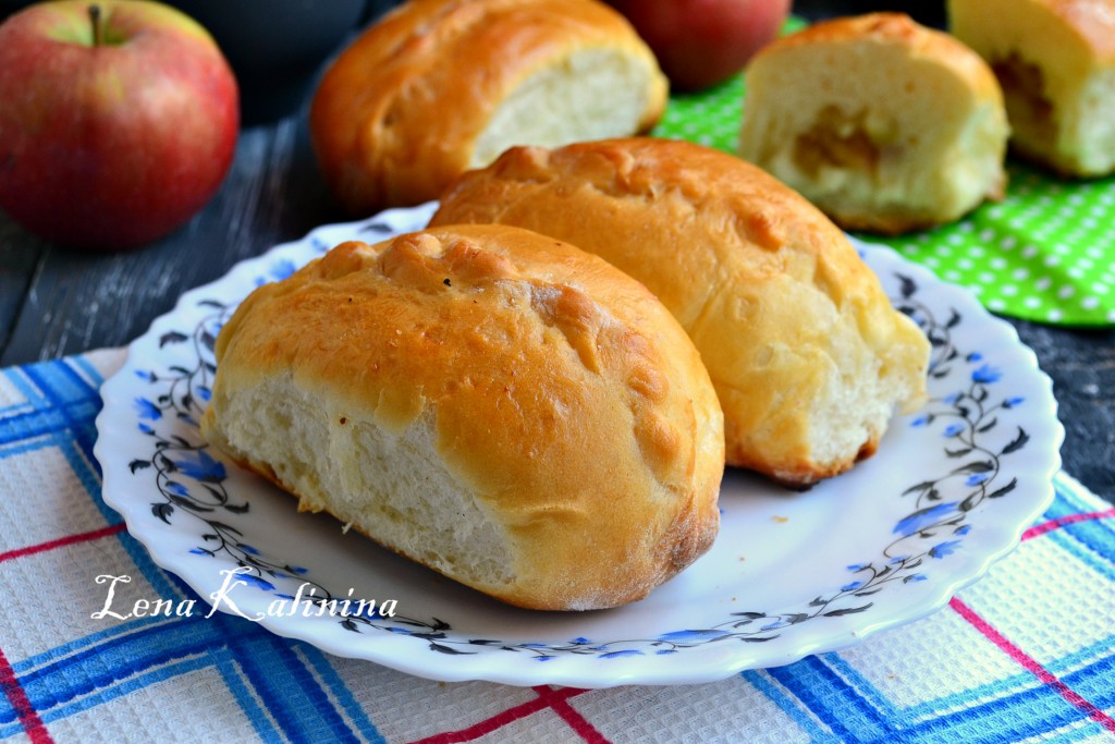 Выпекать дрожжевые пирожки с яблоками в предварительно разогретой до 200 градусов духовке около 20-25 минут.