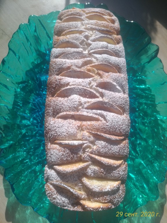 С благодарностью за рецепт! Немного отступила... Яблоки очищала от кожицы, сверху ничем не посыпала, т.к они и так были сладкие, а корицу не все члены семьи любят. В итоге получился невероятно вкусный кекс!