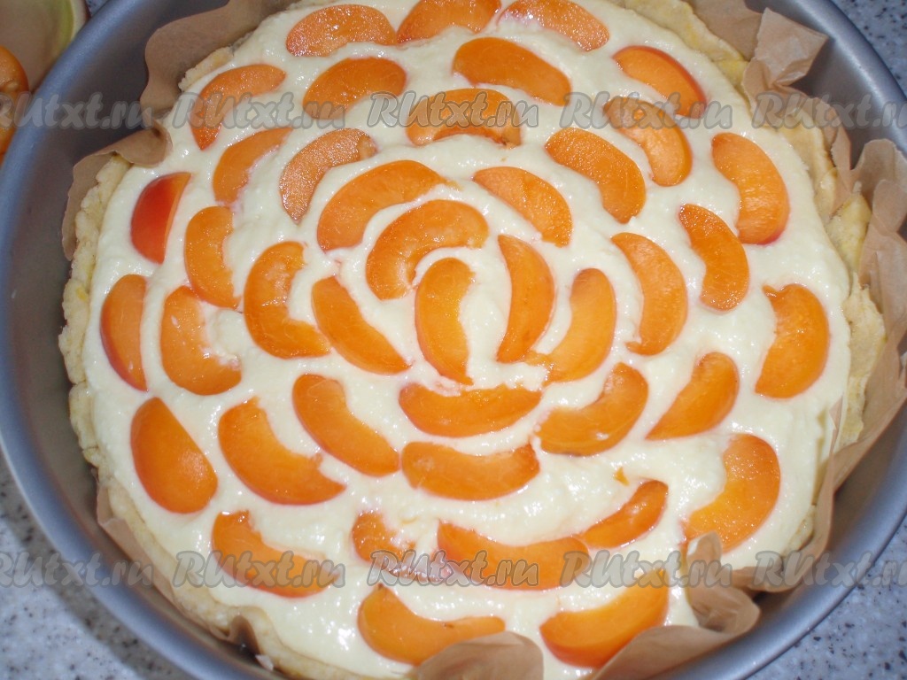 Абрикосы нарезать на дольки и выложить сверху на творожную начинку.