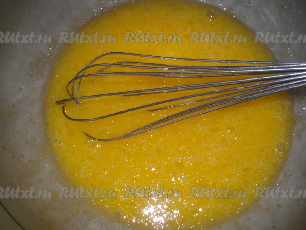 С лимона снять цедру, стараясь не затрагивать расположенный под ней белый слой. Для приготовления начинки взбить 3 яйца и 1 яичный белок с сахаром с помощью венчика до однородности.