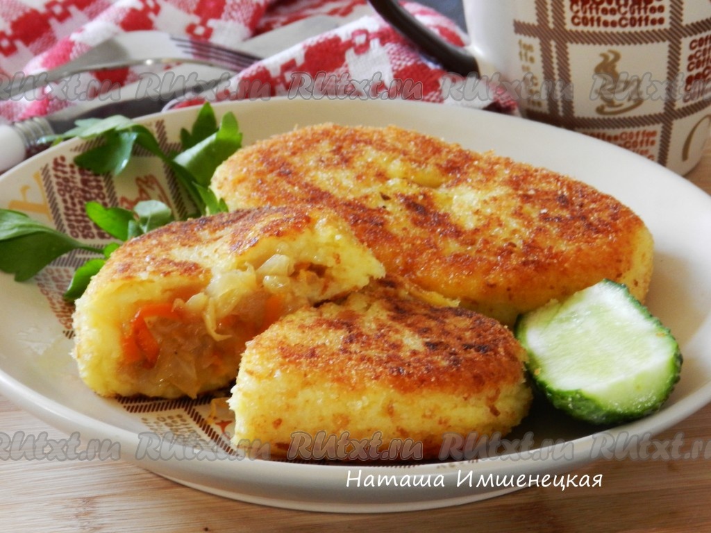 Очень вкусные, аппетитные, мягкие картофельные зразы с капустой, приготовленные на сковороде, к столу подавать горячими.
