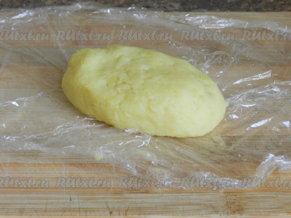 Если не хотите использовать плёнку, немного смочите руки водой, чтобы картофель не прилипал к рукам в процессе формирования зраз.