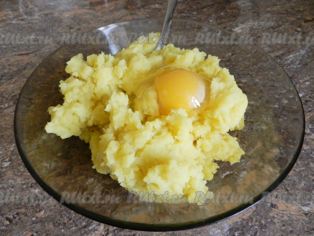Добавить яйцо в картофельное пюре, перемешать.