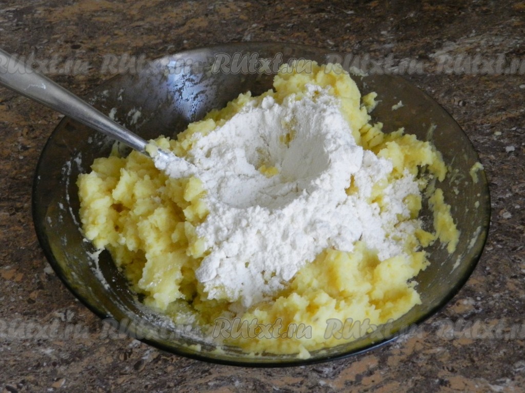 Всыпать постепенно муку в картофельную массу. Муки может понадобиться больше или меньше, в зависимости от сорта картофеля. Но помните, чем меньше муки, тем мягче получатся зразы. Перемешать муку с картофелем до абсолютно однородной массы.