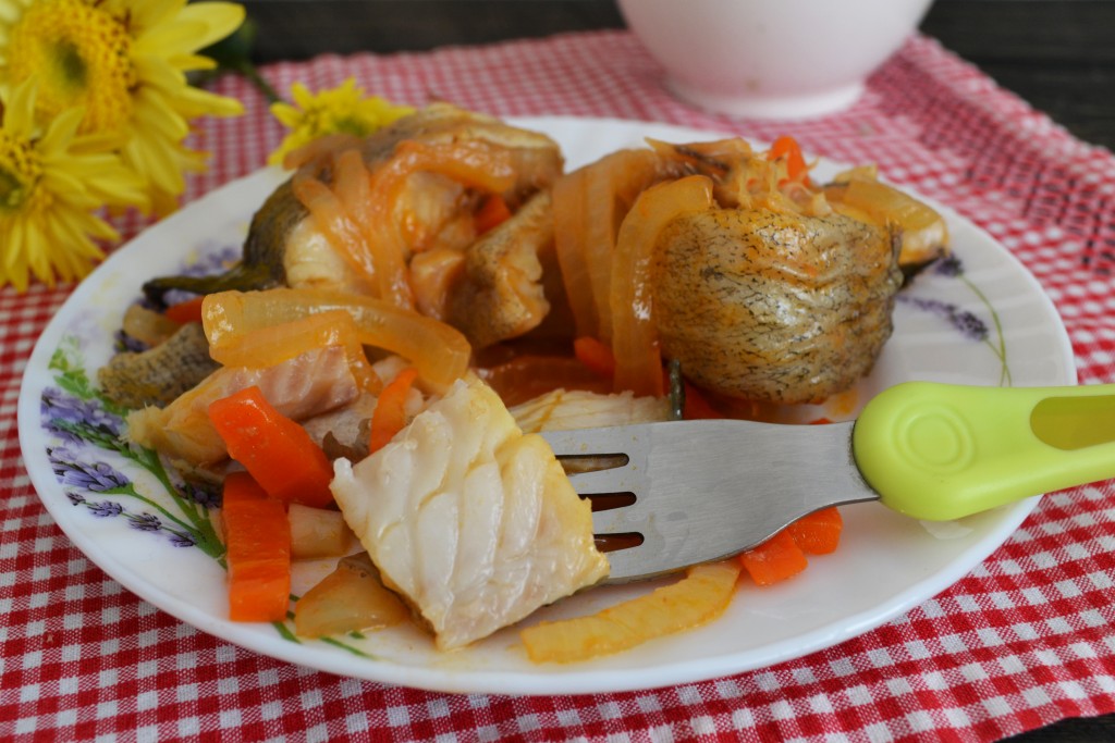 Минтай - это морская, не дорогая и очень вкусная рыба. Рецептов приготовления этой рыбки множество. Сегодня предлагаю потушить минтая с морковью и луком. Не смотря на то, что блюдо бюджетное, рыбка получается восхитительной - сочной, нежной, благодаря овощам - сладковатой, и без мелких костей. Готовить тушеного минтая очень просто. Прекрасно сочетается с любыми гарнирами: кашами, макаронными изделиями, картофелем. Попробуйте и Вам обязательно понравится.