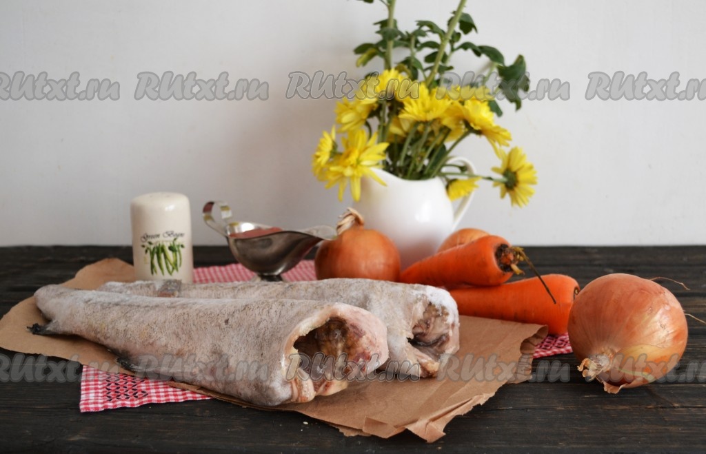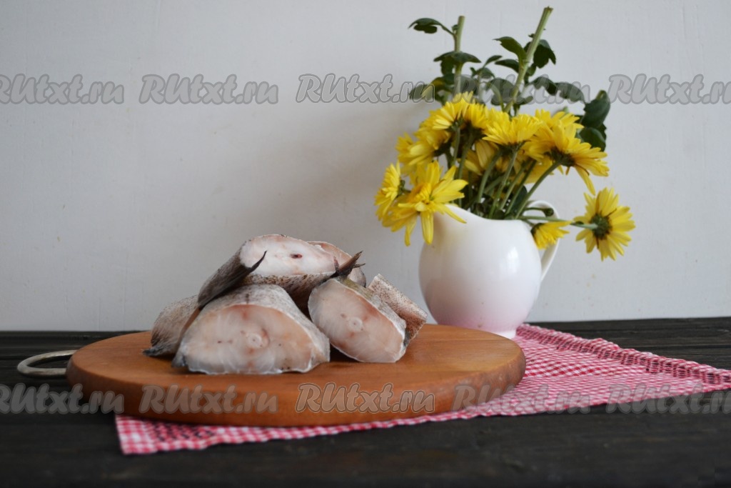 Рыбу выпотрошить, промыть, обсушить и нарезать кусочками толщиной, примерно, по 4 см. Минтай лучше резать, когда он еще не полностью растаял.