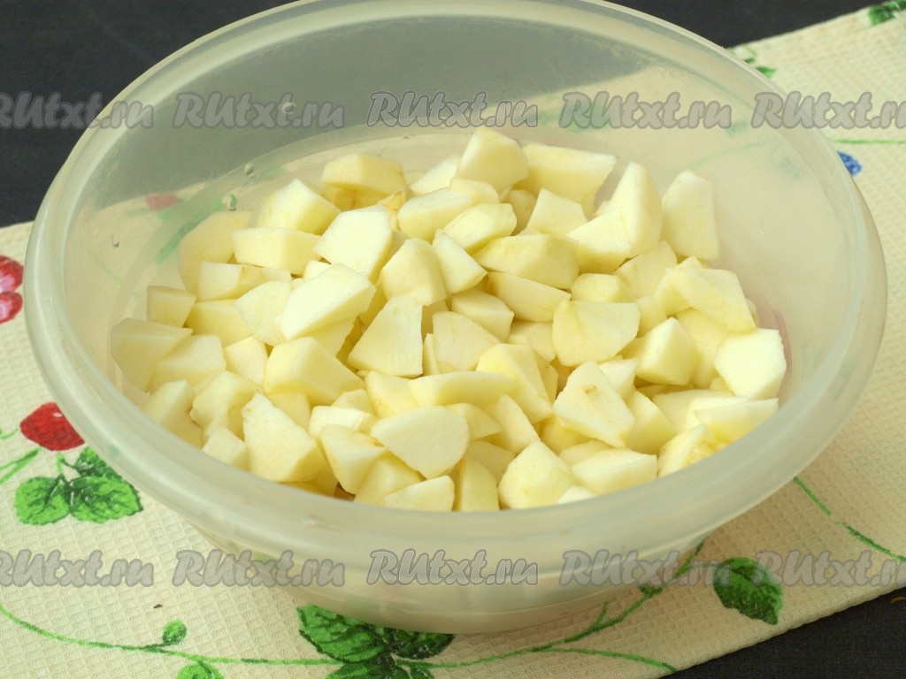 Очистить от шкурки и семечек яблоки, нарезать небольшими кусочками.