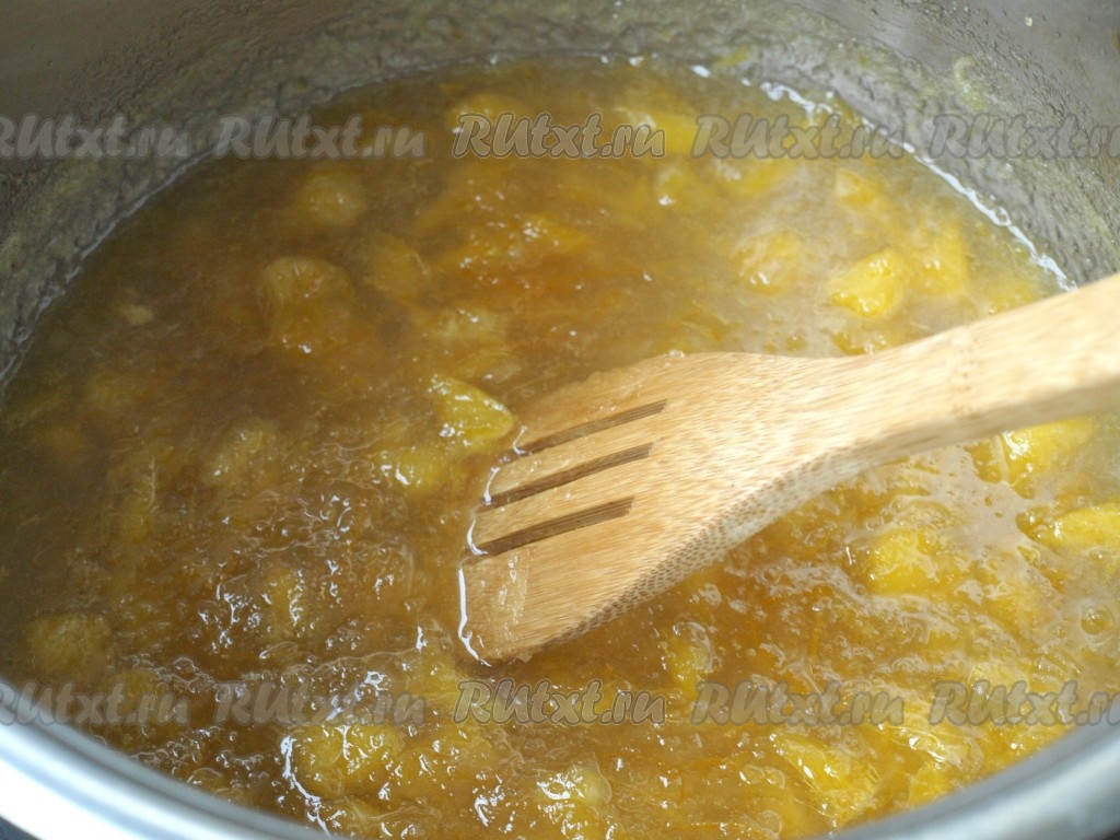 Варим яблочно-апельсиновый джем при открытой крышке до желаемой густоты. Я варила 20 минут, помешивая.