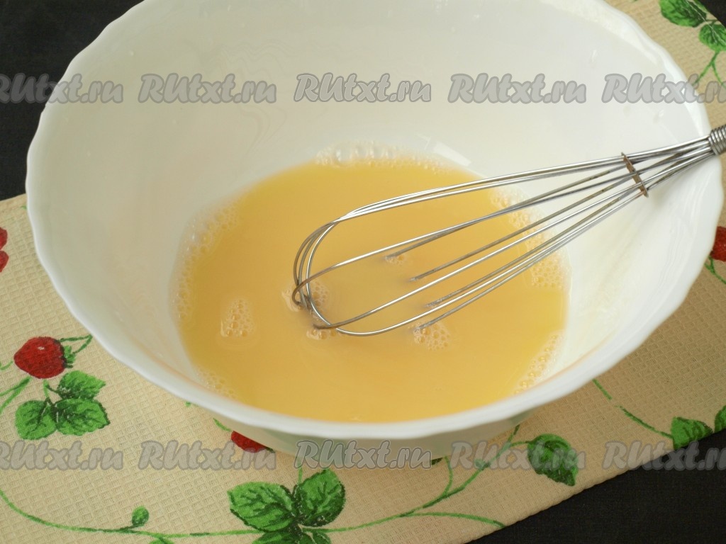 В миску налить воду комнатной температуры, добавить в неё яичный желток, тщательно размешать венчиком.