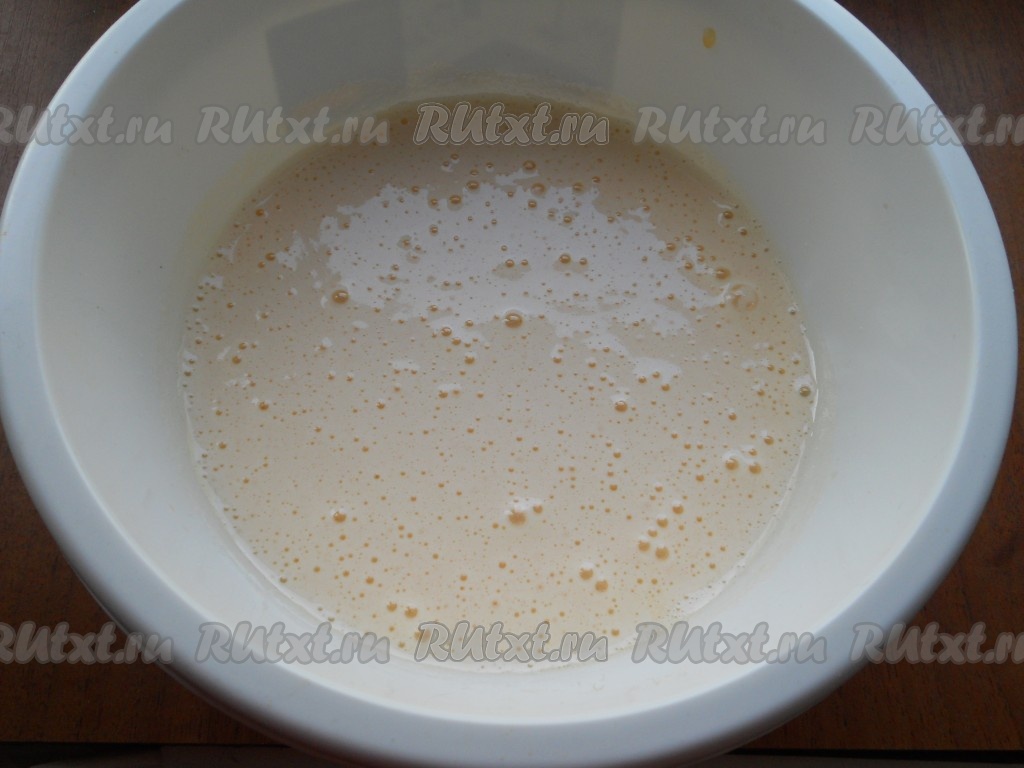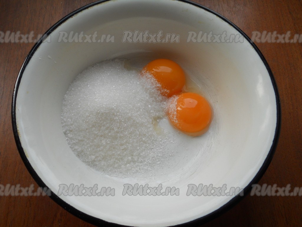 Для приготовления бисквита взбить миксером яйца с сахаром до пышности.