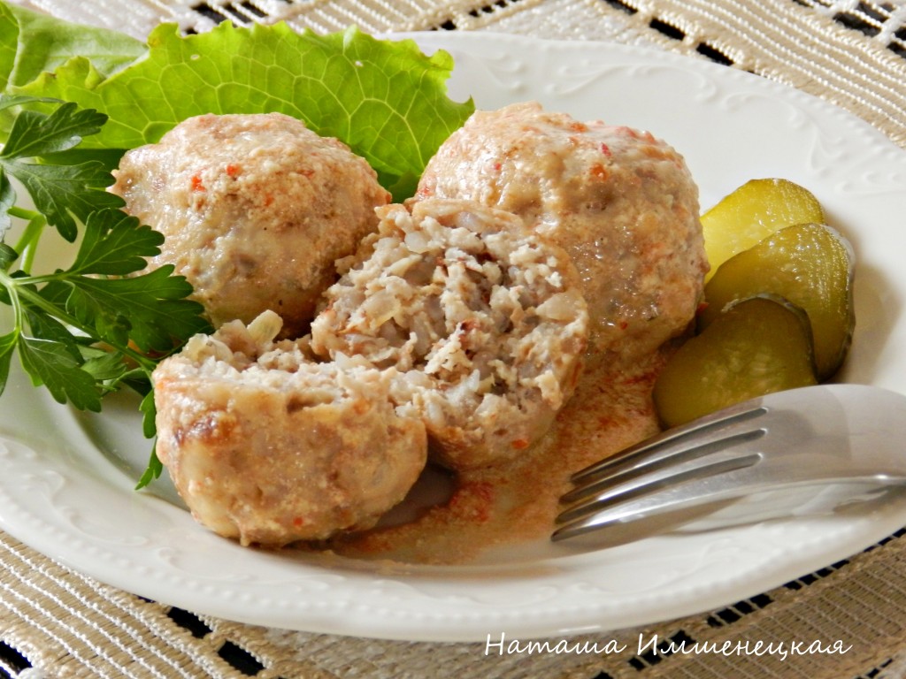 Залить соусом тефтели, поставить на огонь, довести до кипения. Затем уменьшить огонь и тушить тефтели из фарша и гречки в соусе под крышкой в течение 20-25 минут. 2-3 раза тефтели за это время нужно будет перевернуть с одной стороны на другую, чтобы они равномерно протушились.