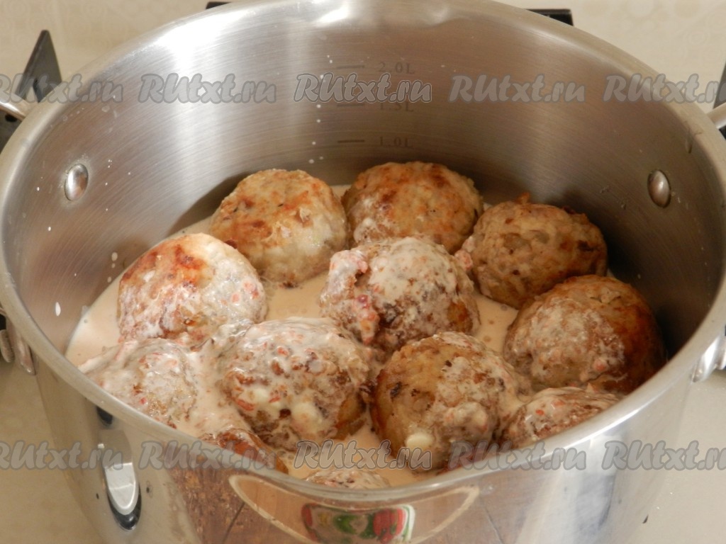 Обжаренные тефтели сложить в кастрюльку с толстым дном.