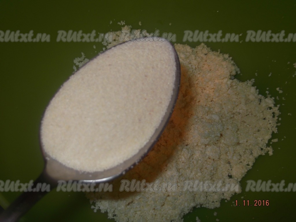 Затем добавляем к творогу манку, перемешиваем и оставляем на час, чтобы манка разбухла.