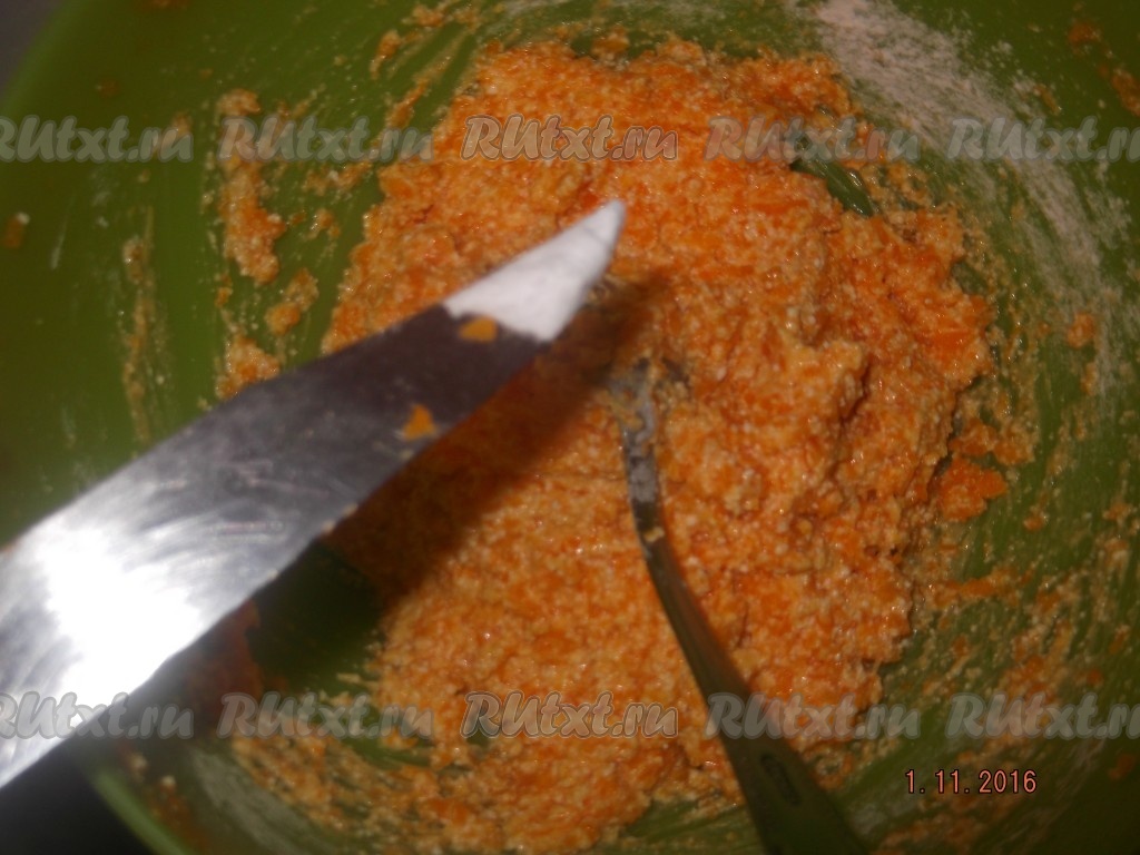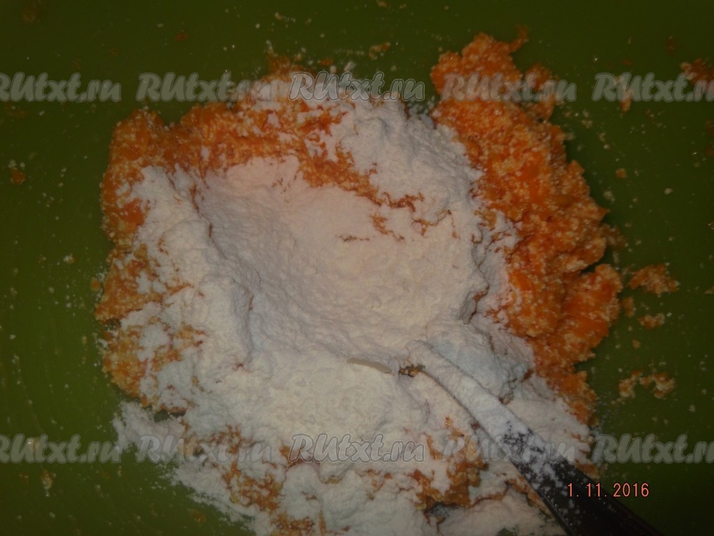 Когда манка набухнет, в смесь творога и манки добавляем измельченную тыкву, хорошо перемешиваем. Затем насыпаем сахар и ванильный сахар, ещё раз перемешиваем.