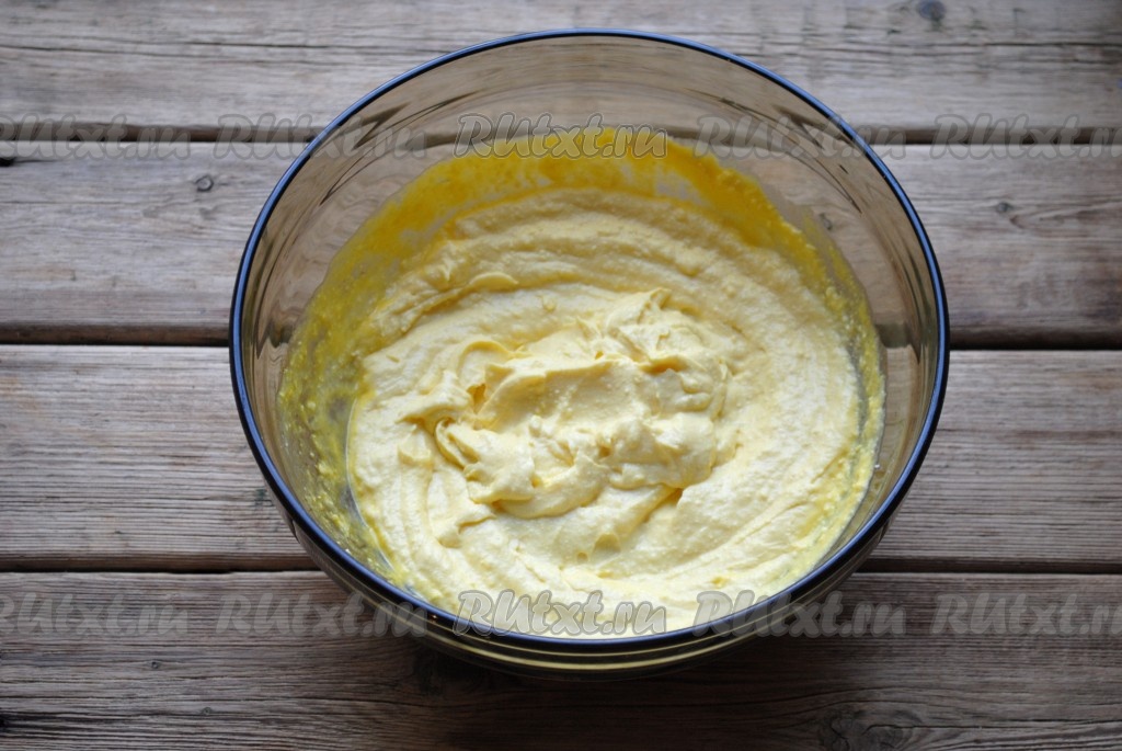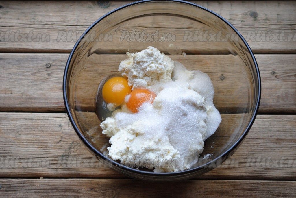 С помощью блендера перемешать творог с яйцами и сахаром до получения однородной массы.