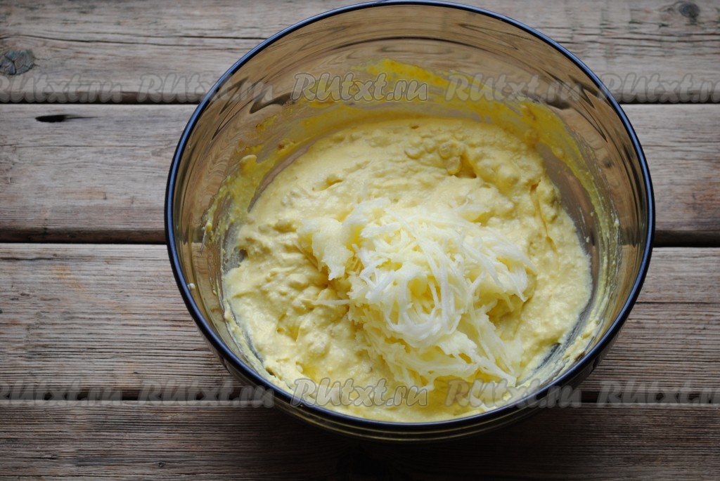 Яблоко, очищенное от кожицы, натереть на тёрке и добавить в творожную массу, перемешать.