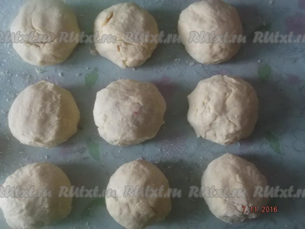 Получившееся тесто делим на 9 равных частей и помещаем на полчаса в холодильник.