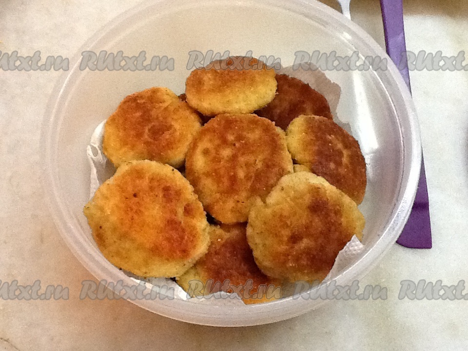 Таким образом поступаем с оставшимся фаршем и складываем оладьи в контейнер на салфеточку.