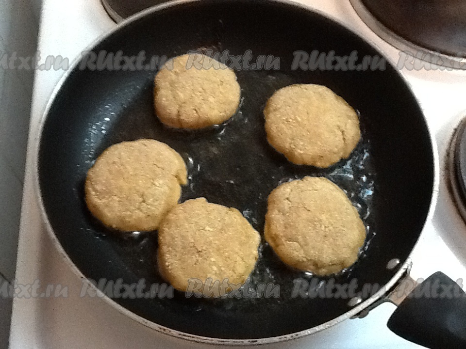 Разогреть масло на сковороде и выкладывать куриные оладьи.