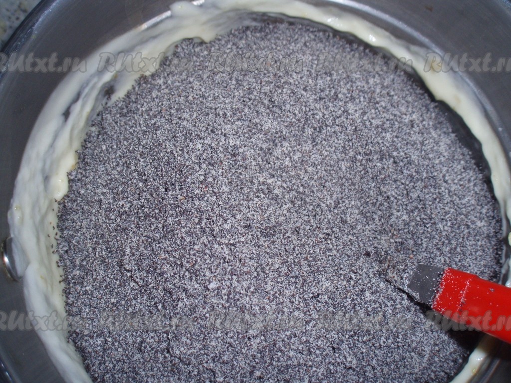 Охлажденный пудинг соединить с маковой начинкой, хорошо перемешать.