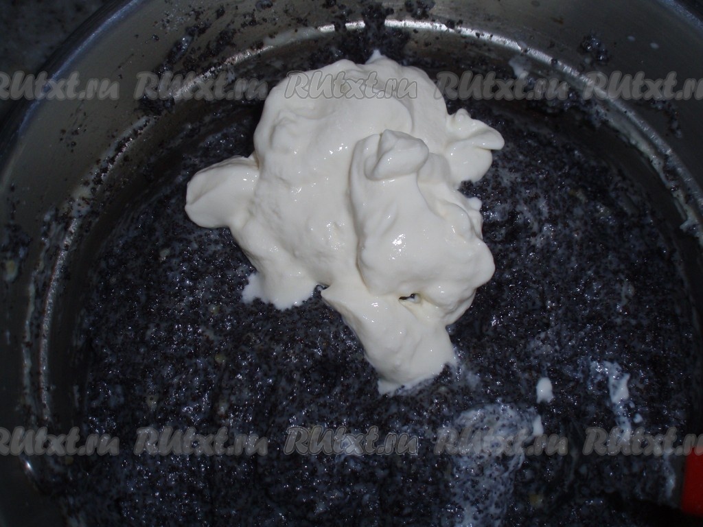 Добавить сметану и ещё раз хорошо перемешать. Маковая начинка для песочного пирога готова.
