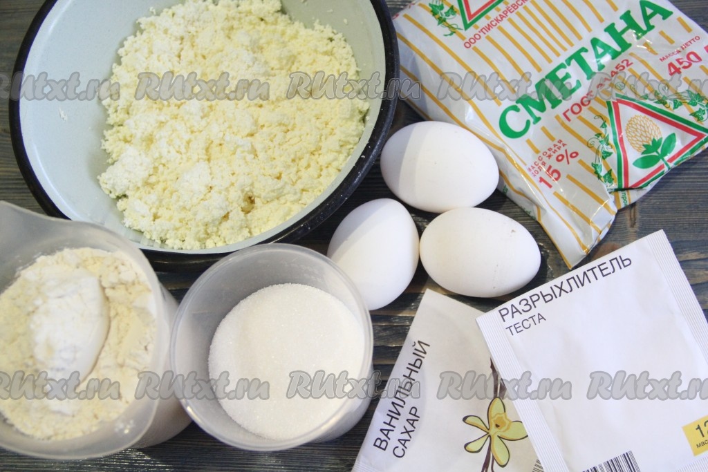 Подготовить продукты. Сметану и творог можно взять любой жирности. Я использовала зернёный творог, через сито не перетирала.