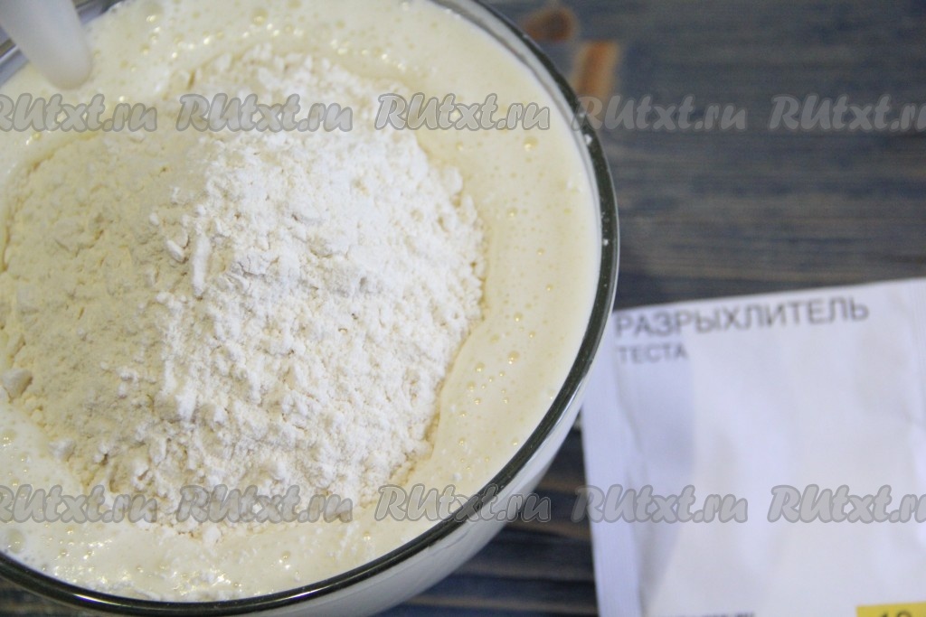 Затем всыпать муку и разрыхлитель.