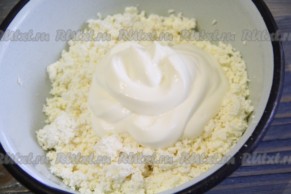 Соединить творог со сметаной.