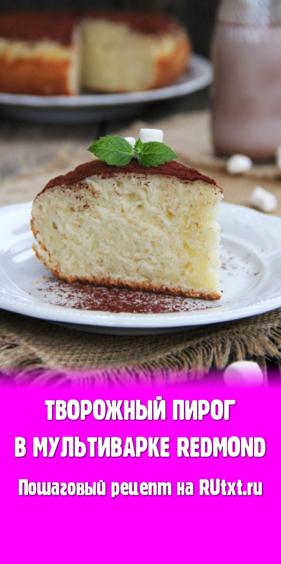 Хочу поделиться простым рецептом творожного пирога, приготовленного в мультиварке Redmond. Пирог получается высоким, пышным, с насыщенным вкусом творога. Творог можно взять любой жирности, я использовала 5%. Такой пирог можно перед подачей посыпать какао или сахарной пудрой, а можно подать с вареньем или сгущёнкой.