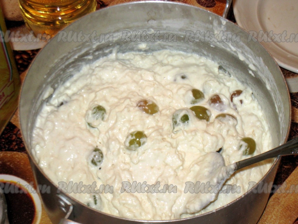 Добавить, по желанию, виноград и одним-двумя движениями вмешать его в тесто.