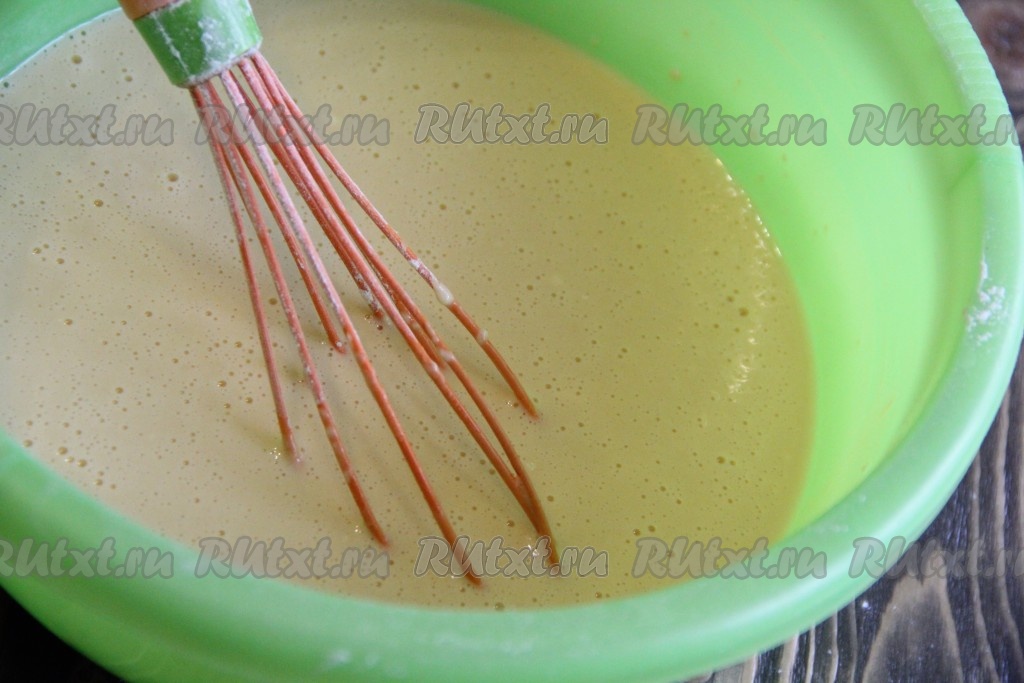 Блины для этого торта с яблоками можно испечь по любому рецепту. Я даю простой и удачный рецепт приготовления блинов на молоке: соединить молоко, яйцо, соль и сахар, слегка перемешать венчиком, затем добавить муку и перемешать тесто до однородности. Дать тесту отдохнуть минут 10, затем добавить 2 столовых ложки растительного масла и перемешать. Тесто получится однородным и не густым.