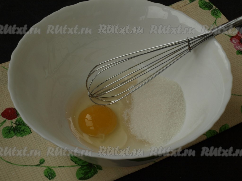 В глубокую миску разбить яйцо и добавить сахар и соль, взбить венчиком.