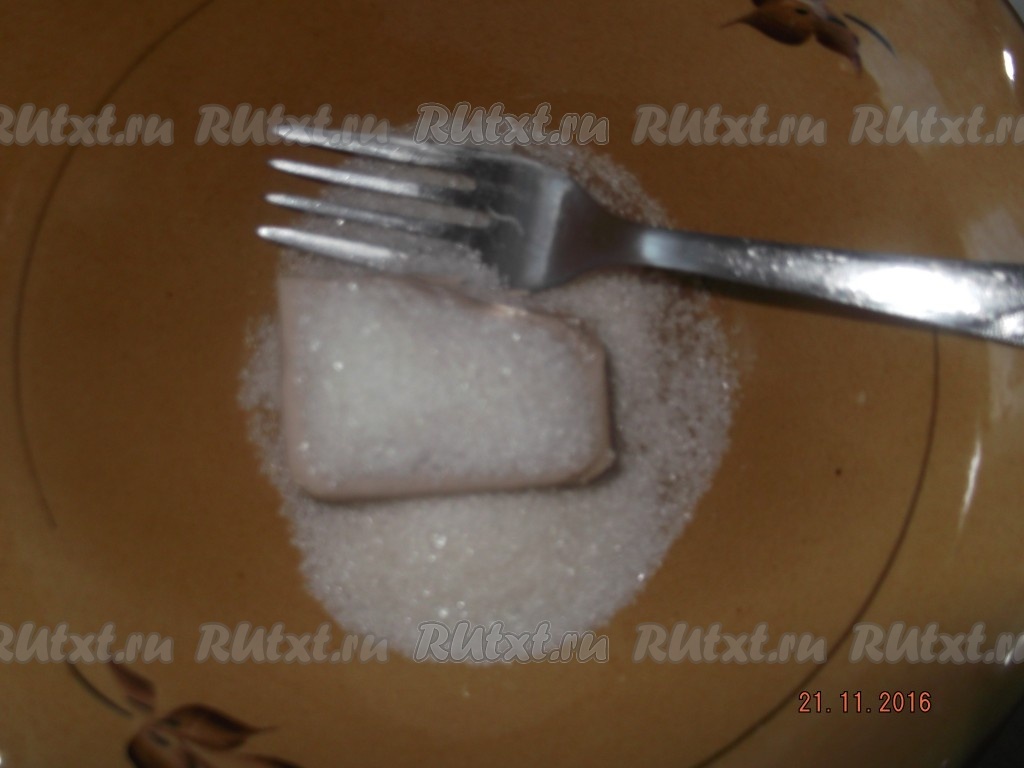 В отдельную миску выложить свежие дрожжи и посыпать 1 столовой ложкой сахара.