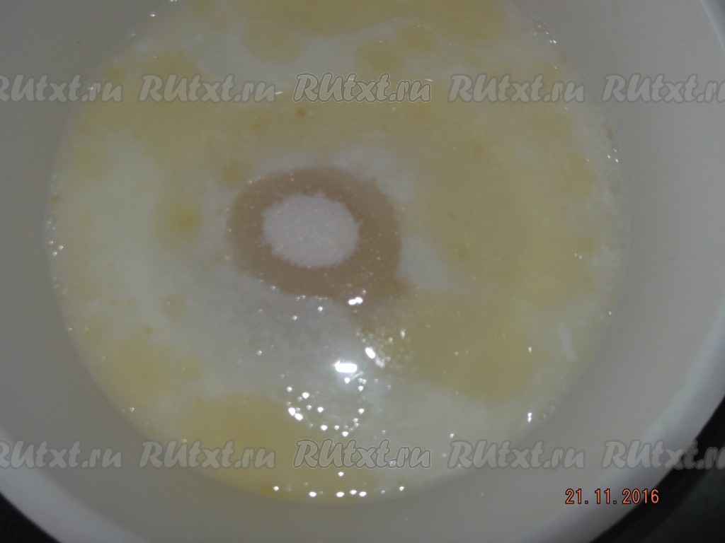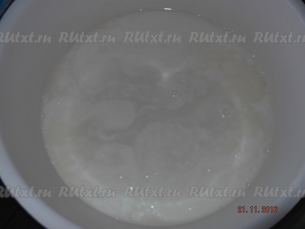 Для начала налить нашу сыворотку в миску. Предварительно сыворотку необходимо слегка подогреть до комнатной температуры.