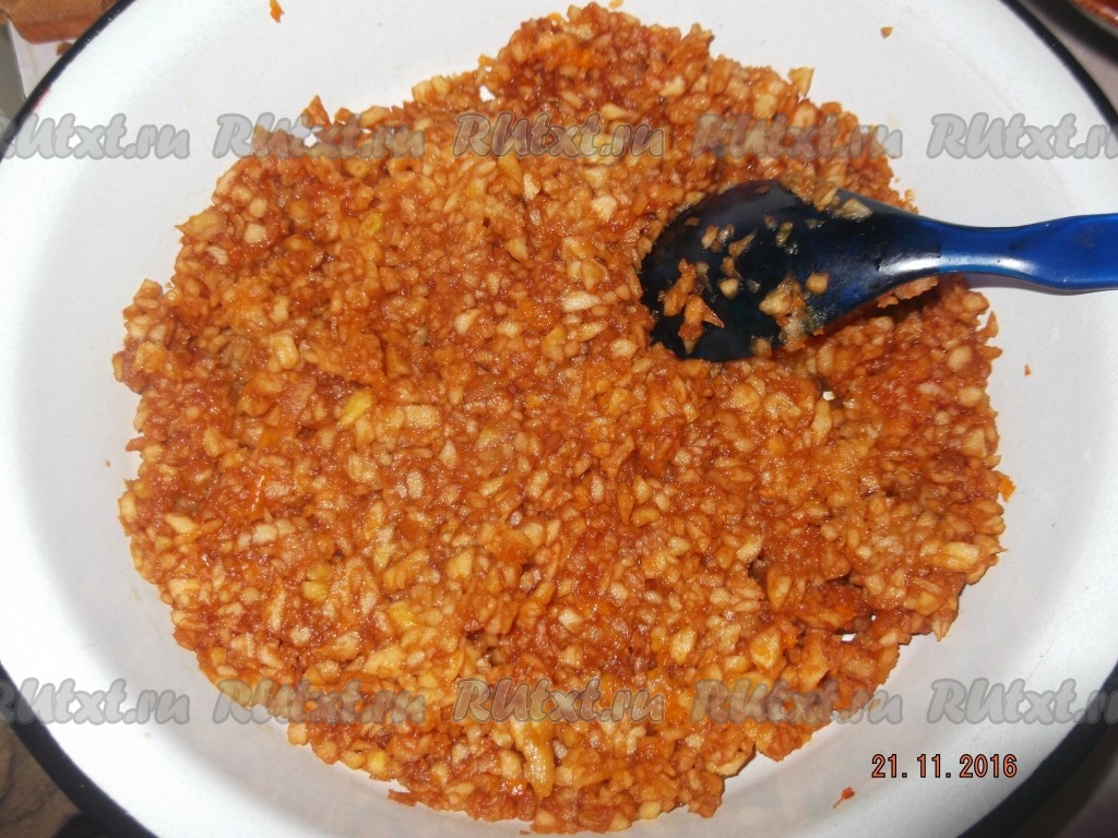 Замешанное тесто поставить на 2 часа в холодильник. Тесто должно увеличиться в 2 раза. Пока тесто подходит, мы приготовим тыквенно-яблочную начинку. Очистить тыкву от кожуры и перебить в блендере.