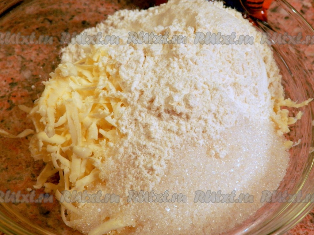 Приготовить штрейзель: сливочное масло натереть на терке.