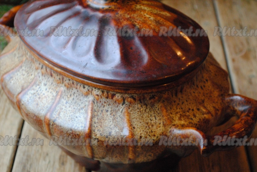 Залить горячей водой, накрыть крышкой и отправить в разогретую до 180 градусов духовку на 1-1,5 часа.