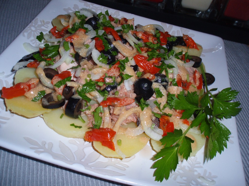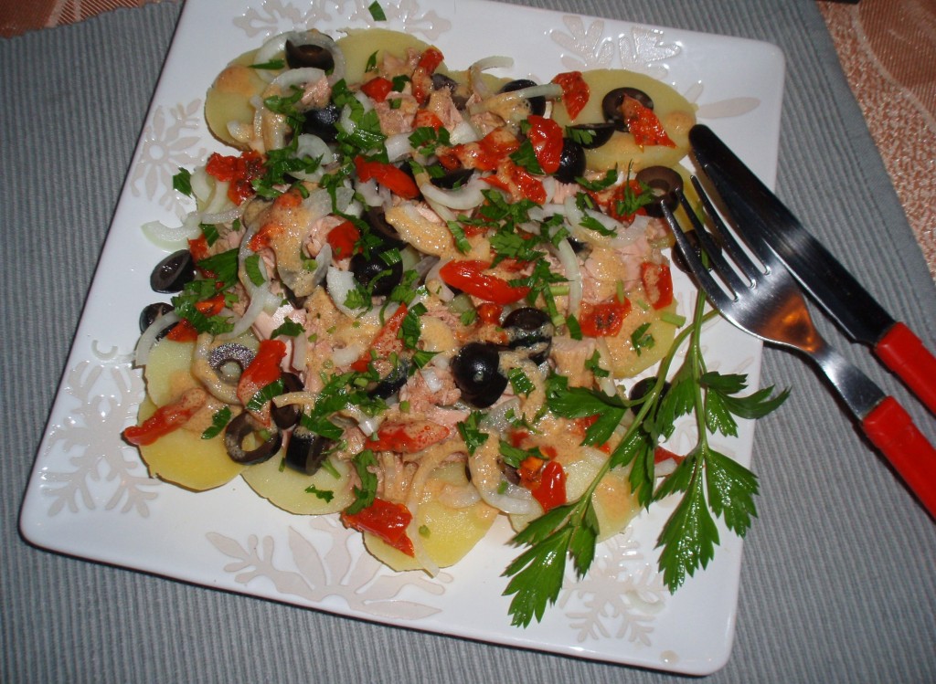 Картофельный салат с тунцом может стать замечательным легким ужином, перекусом, а может претендовать и на место на праздничном столе. Ингредиенты все доступны, готовится просто и быстро, а результат, наверняка, порадует.
