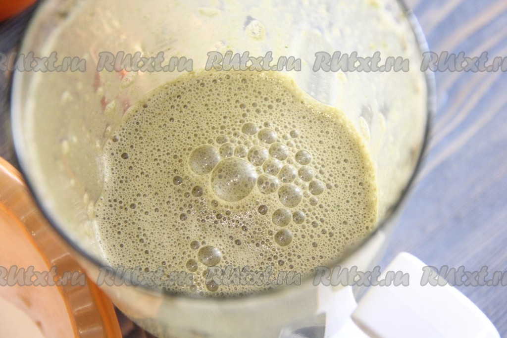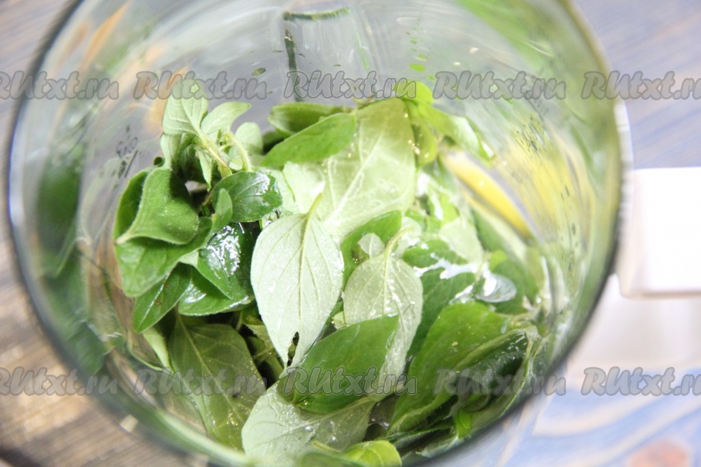 Мяту и 1 яйцо выложить в чашу блендера и измельчить.