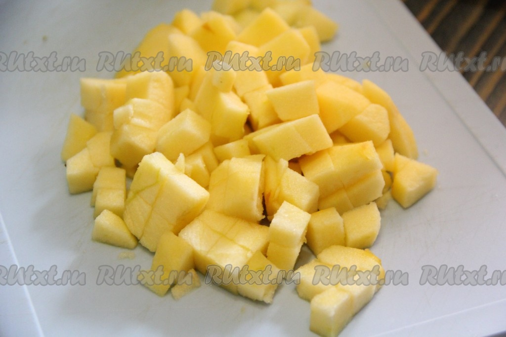 Яблоки вымыть и, очистив от кожуры и семян, нарезать на мелкие кубики.