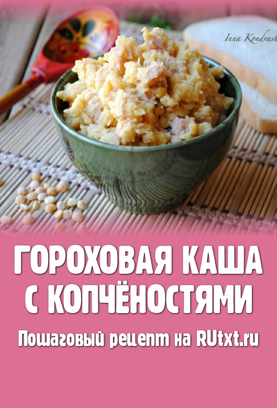 В моей семье очень любят гороховый суп с копченостями, сегодня я решила поэкспериментировать и приготовить не суп, а кашу. Получилось вкусное, питательное блюдо и пришлось по вкусу всем моим родным. Рецептом гороховой каши с копченостями хочу поделиться и с вами.