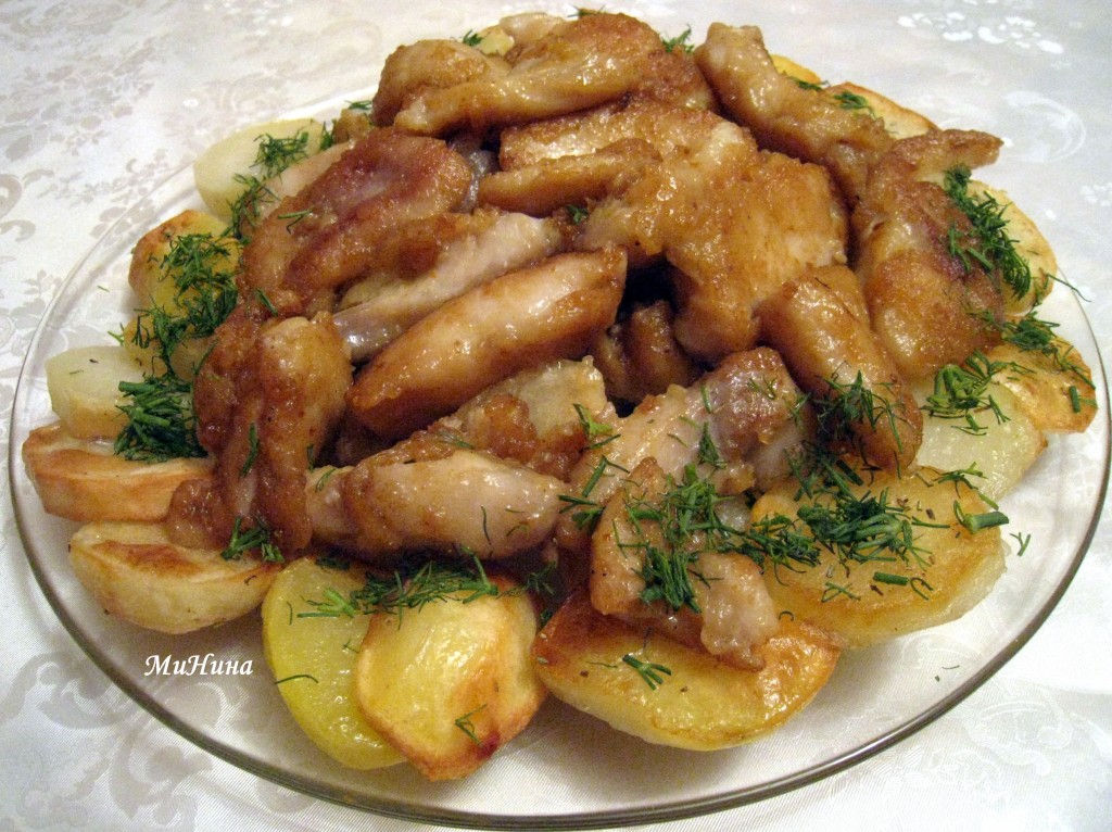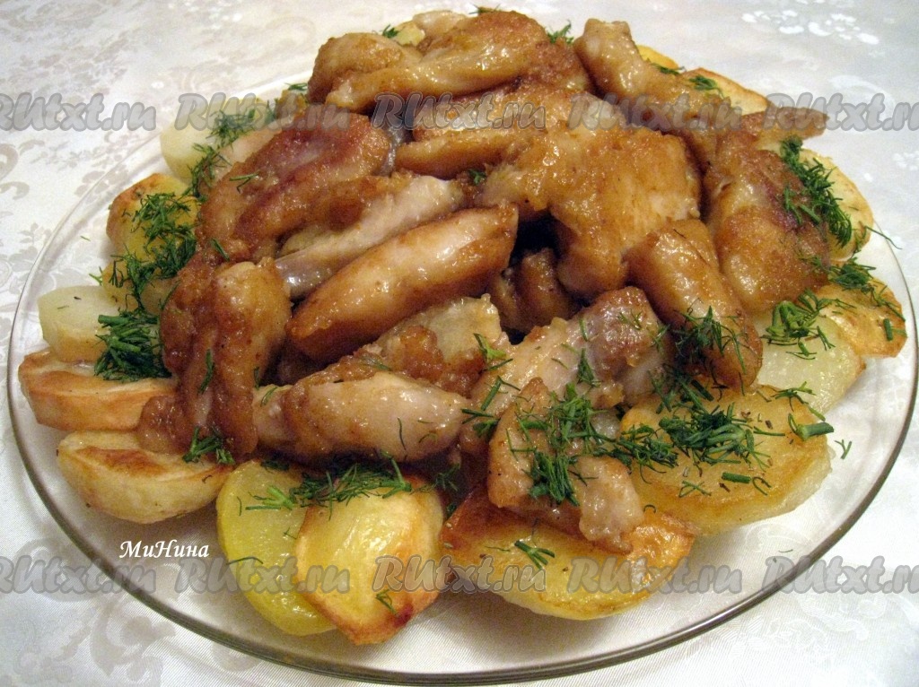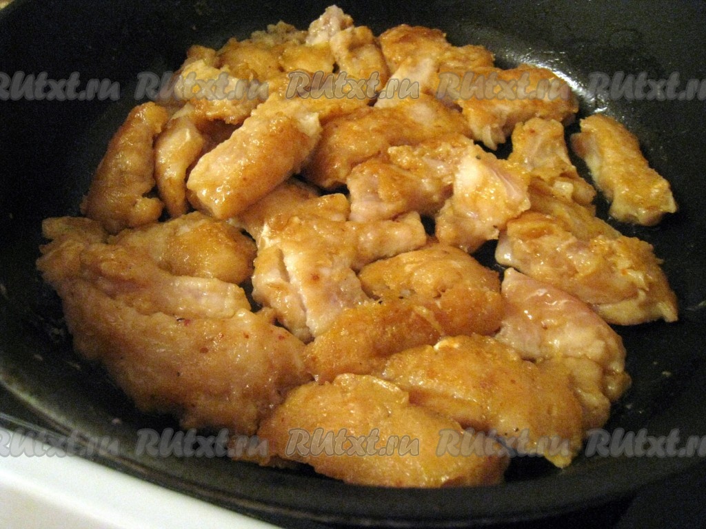Жарить на сильном огне на сковороде в растительном масле, минут 10 постоянно встряхивая, а потом ещё минут 5 на среднем, переворачивая и помешивая.