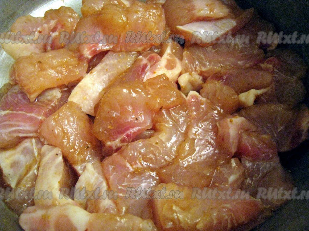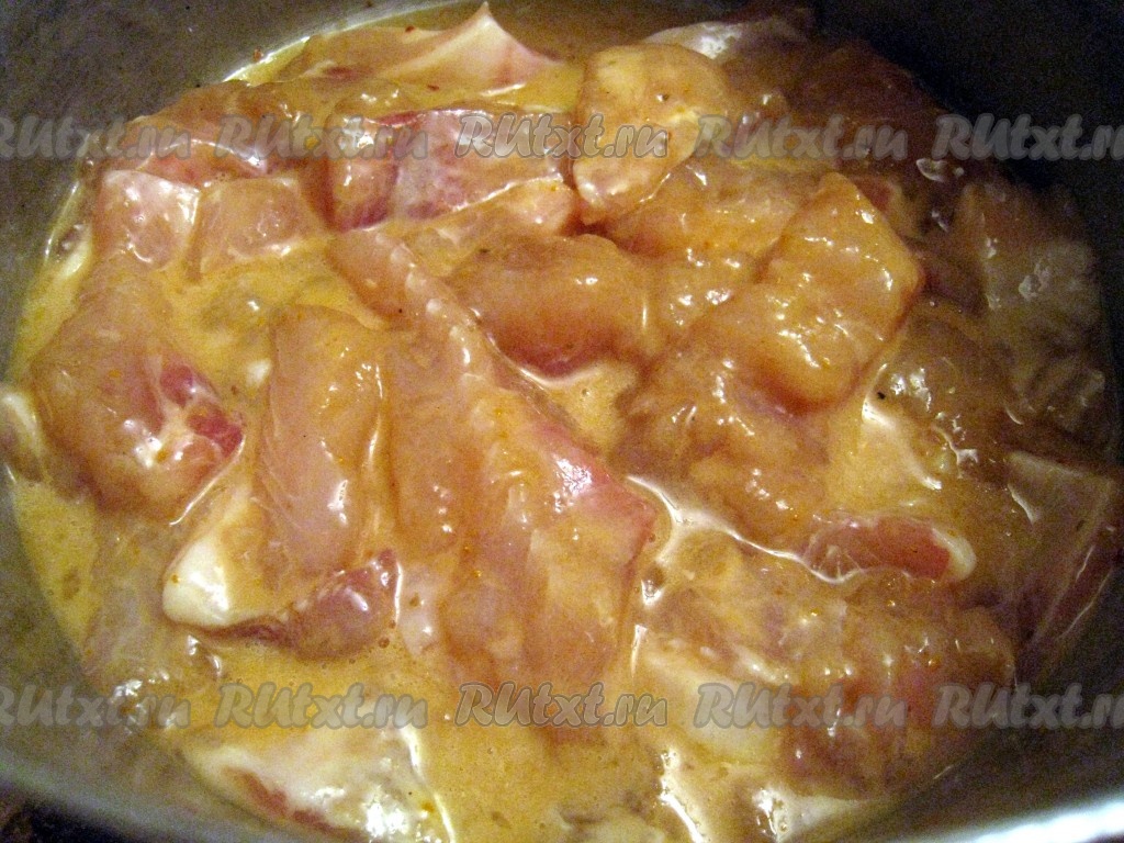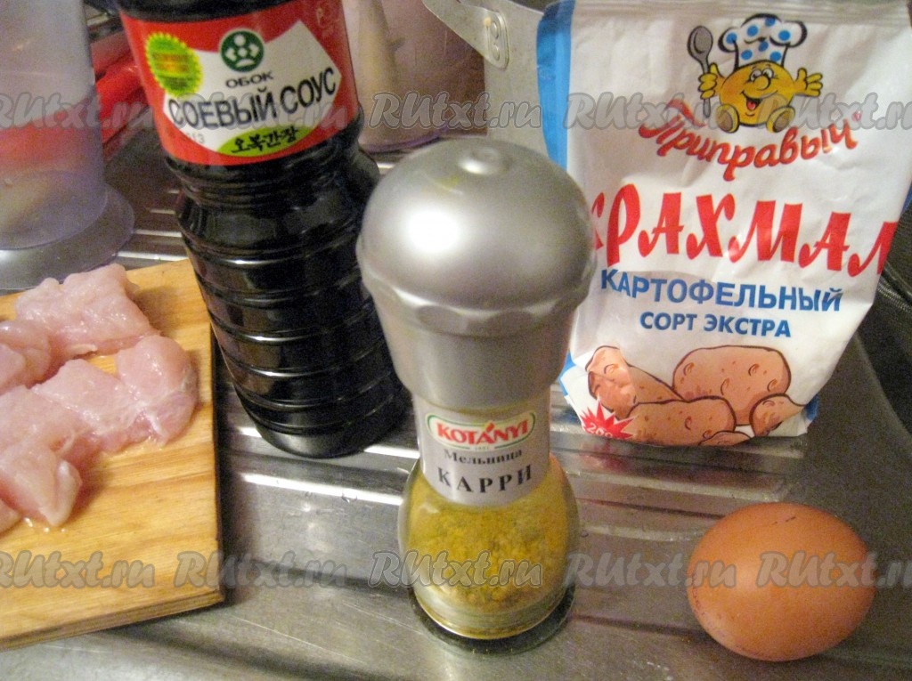 Рыбу нарезать порционными кусочками, залить соевым соусом, посыпать карри, перемешать.