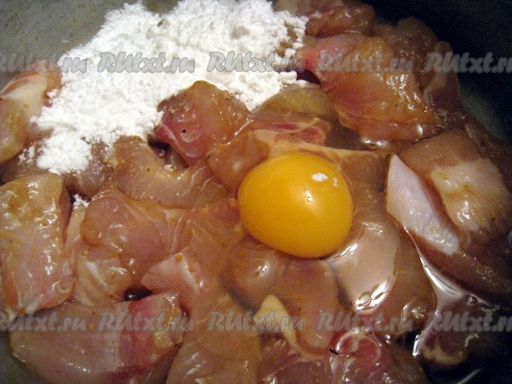 Затем добавить к рыбе крахмал, яйцо и равномерно всё перемешать.