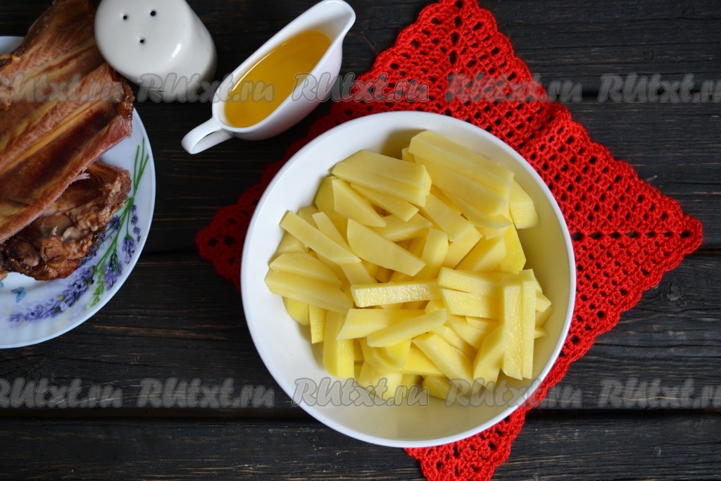 Очистить картофель и нарезать соломкой (можно нарезать и кубиками).