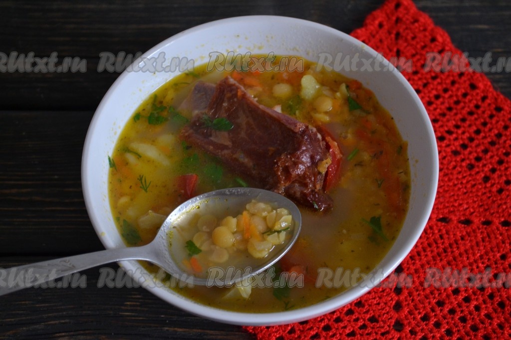 Рецепт горохового супа с копчеными ребрышками в мультиварке