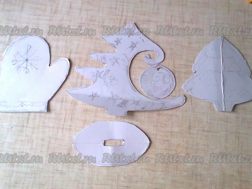 Трафарет, вырезанный из картона, выкладываем на тесто и коротким ножом с острым концом вырезаем фигурки по контуру трафарета.