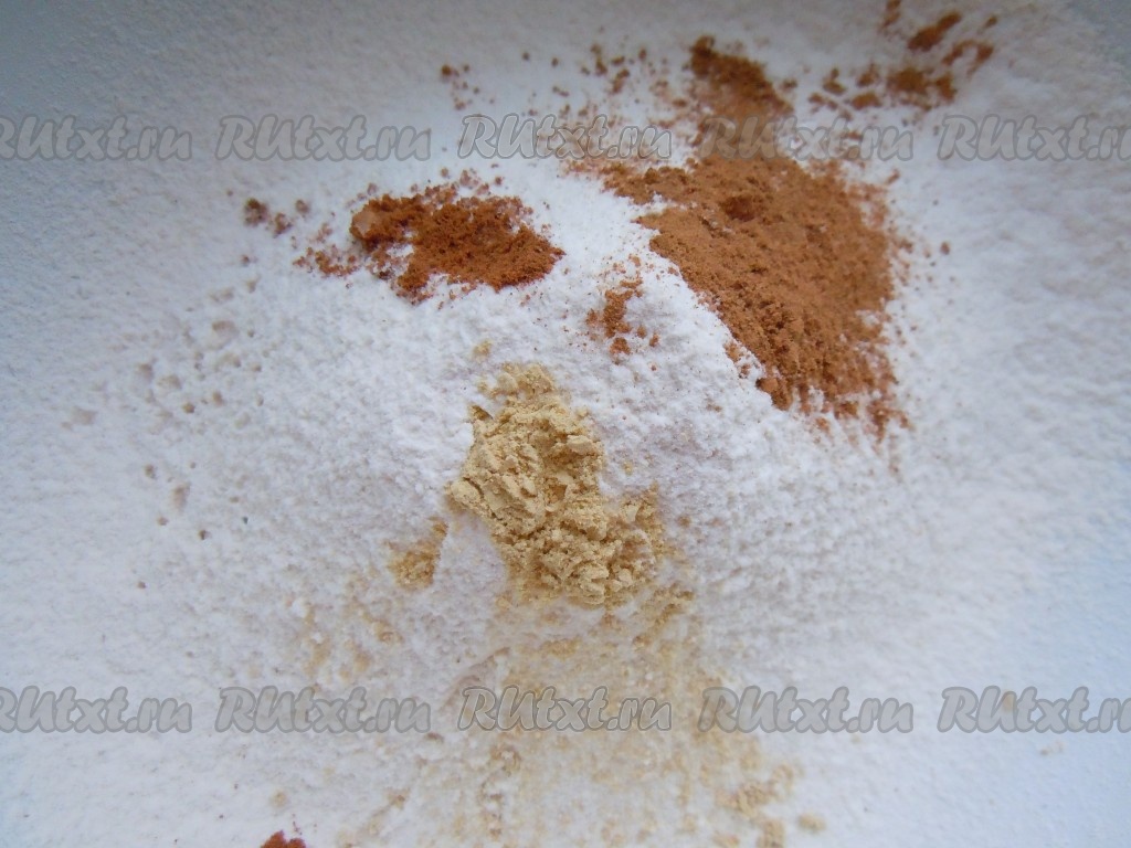 В отдельную миску просеять муку, соль, корицу, имбирь, мускатный орех.