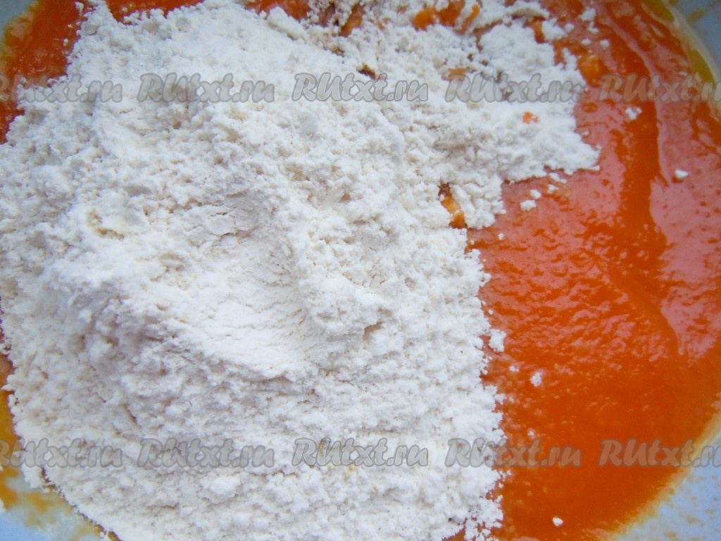 Высыпать смесь из муки и специй в тыквенную смесь.